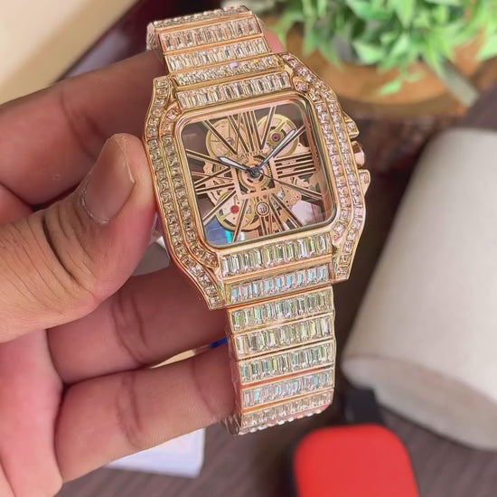 _A stunning masterpiece of luxury, this diamond-encrusted Cartier watch dazzles with opulence and exquisite craftsmanship._